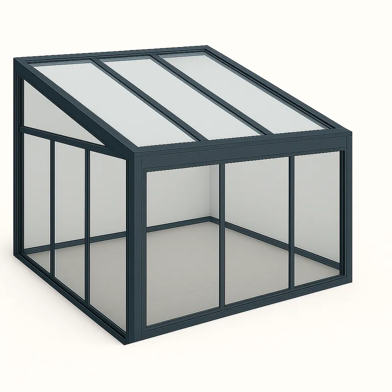 Glass-roofed conservatories add a modern and stylish touch to your living spaces, creating a usable space throughout all seasons. Strong aluminum carrier profiles and high-strength glass systems provide protection against external factors. Glass roofs create a spacious atmosphere by allowing direct sunlight in, offering an aesthetic solution, especially in areas such as gardens, terraces, and patios. Double-glazed or laminated glass applications provide both energy efficiency and comfort. With their minimalist design and functional structure, glass-roofed conservatories offer both decorative and functional solutions for homes, cafes, restaurants, and hotels.